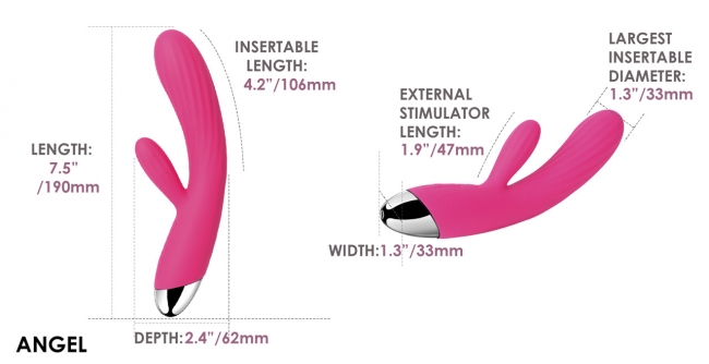 Angel Сливовый Вибростимулятор с ребристым стволом, клиторальным отростком и функцией нагрева / Без коробки /