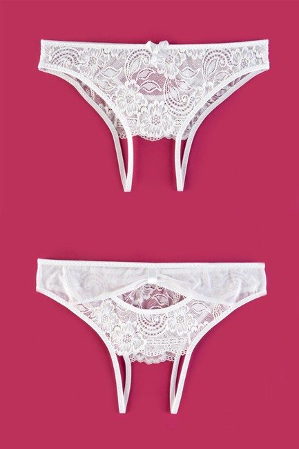 Белые контактные кружевные трусики с открытыми ягодицами SM (42-44)